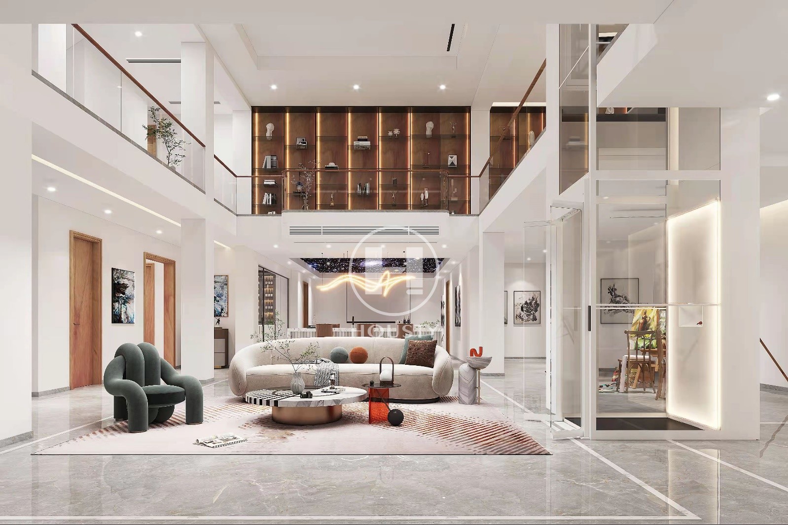 设计师钟爱螺杆电梯,很大原因是由于起在设计方案中的适配性非常高,而且能够为整体装修方案增光添彩。如果是密闭井道,可以配备密闭轿厢,无井道可以选择三面观光或局部观光。根据装修风格不同,电梯可以选择不同的配色,也可以选择不同的开门方式,Housty亨世达家用电梯均有多种定制颜色和多种开门方式可选。这些选项一看房屋环境条件,二考虑业主个人喜好,三考虑装修成本和实现的难易程度。