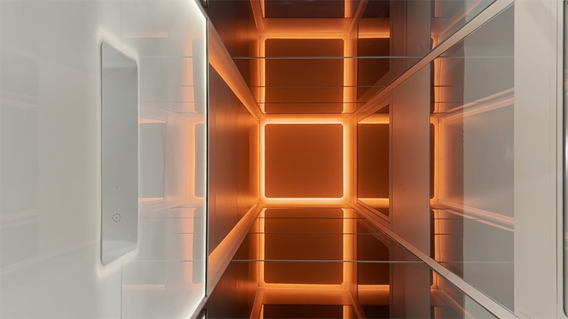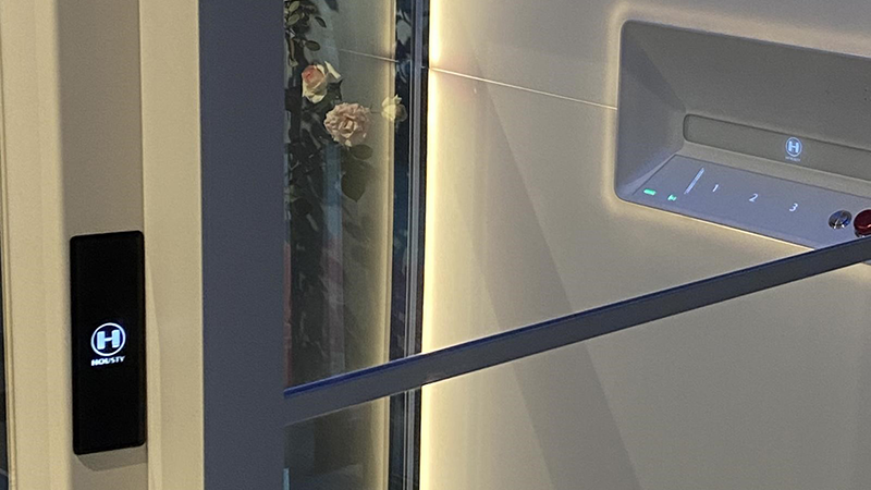 HOUSTY亨世达家用电梯无需地坑和顶坑,自带井道,多种尺寸定制,最小尺寸935mm*1011mm,顶层高度最低2200mm即可安装。整梯采用简约大气的设计风格,经过无铆钉扣板设计,整梯精密拼接,无铆钉外露,达到艺术品般的产品呈现。三面玻璃观光,运用独特设计的窄边框,通透大气;配备RGB彩色灯带,可以根据居家装修风格随意调节,更添艺术气息,精选梯内触摸材质、打造梦幻光影效果。