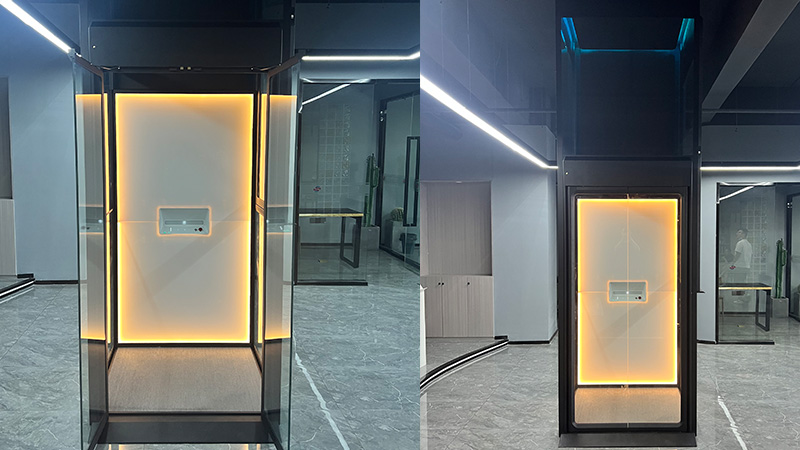 Housty亨世达家用电梯无需地坑和顶坑,自带井道,多种尺寸定制,顶层高度最低2200mm即可安装。整梯采用简约大气的设计风格,经过无铆钉扣板设计,整梯精密拼接,无铆钉外露,达到艺术品般的产品呈现。三面玻璃观光,运用独特设计的窄边框,通透大气;配备RGB彩色灯带,可以根据居家装修风格调节,更添艺术气息,精选梯内触摸材质、打造梦幻光影效果。
