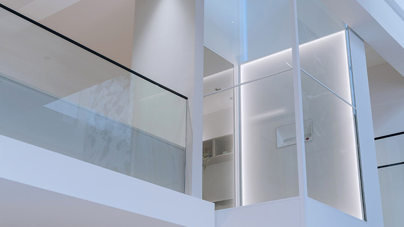 HOUSTY·亨世达家用电梯无需地坑和顶坑,自带井道,多种尺寸定制,顶层高度最低2200mm即可安装。整梯采用极简轻奢的设计风格,经过无铆钉扣板设计,整梯精密拼接,无铆钉外露,达到艺术品般的产品呈现。三面玻璃观光,运用独特设计的窄边框,通透大气;配备RGB彩色灯带,可以根据居家装修风格选择外观颜色,更添艺术气息,精选梯内触摸材质、打造梦幻光影效果。