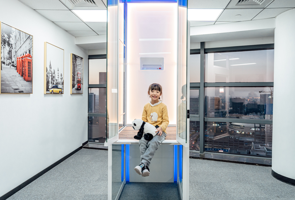 那么这两款产品的主要竞争力,首先在电梯的外观上,一改传统电梯沉闷的铁皮包裹的外观形象,运用了通透的玻璃材料和灯光艺术效果,使其像是一件精美的艺术品一样,给人耳目一新的感觉。